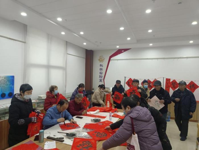 不止是写春联。近年来,旺庄街道将文化实事持续做透:每年举办春联展,把居民、职工写的作品挂进社区展厅,让墨香变成“看得见的年味儿”;打造迎新晚会,书画队伍现场写春联,并作为互动奖品派发,把文化交流变成居民的“新年期待”。