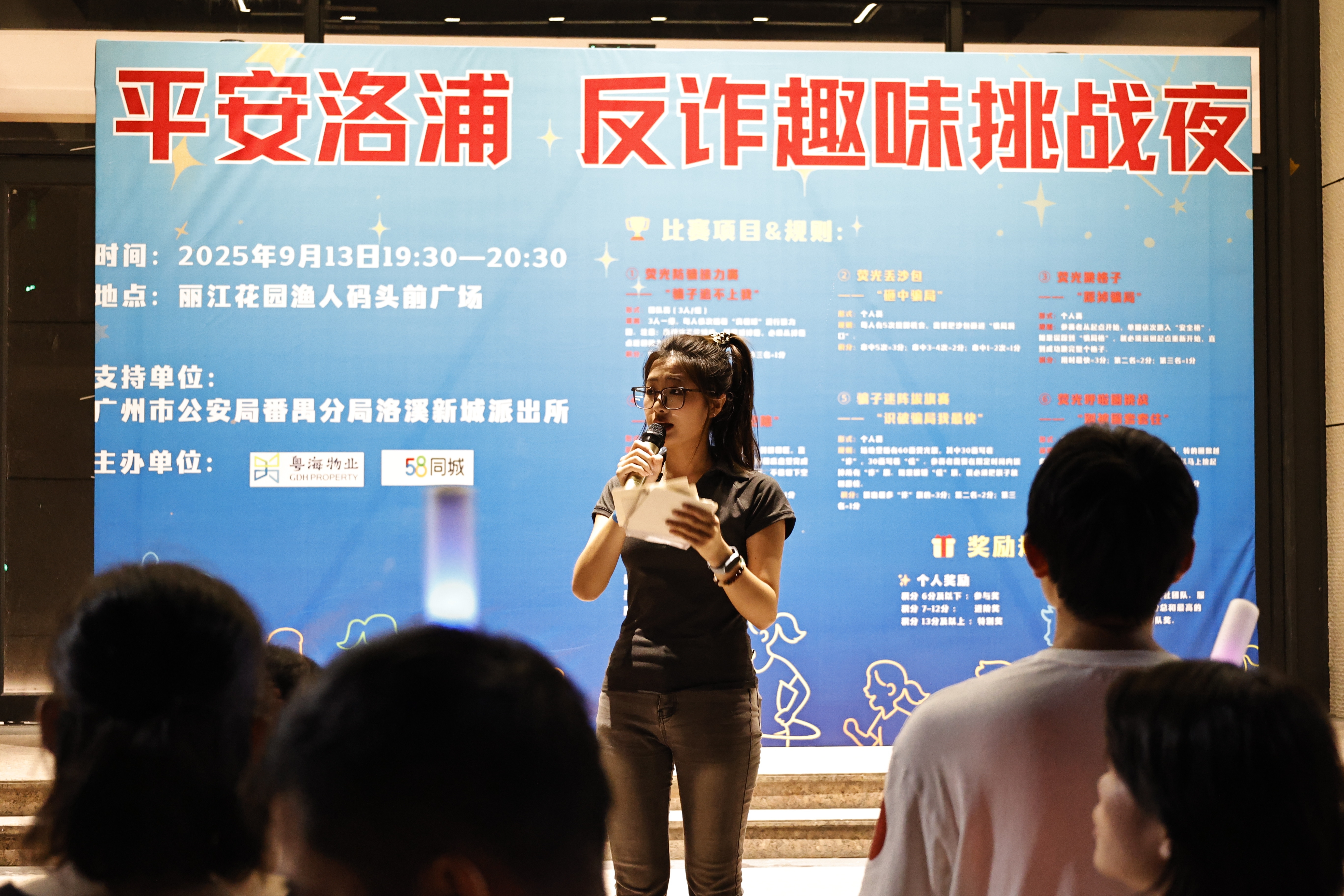 赖琦把想法告诉物业后,很快得到了支持。随后,在洛溪新城派出所的指导下,58同城反诈团队联合粤海物业,结合平台及居民常见的诈骗案例,设计了“骗子迷阵拔旗赛”“荧光防骗接力”等六个趣味游戏,把“高薪日结”“押金陷阱”“假中奖”等骗局转化为直观有趣的互动挑战。