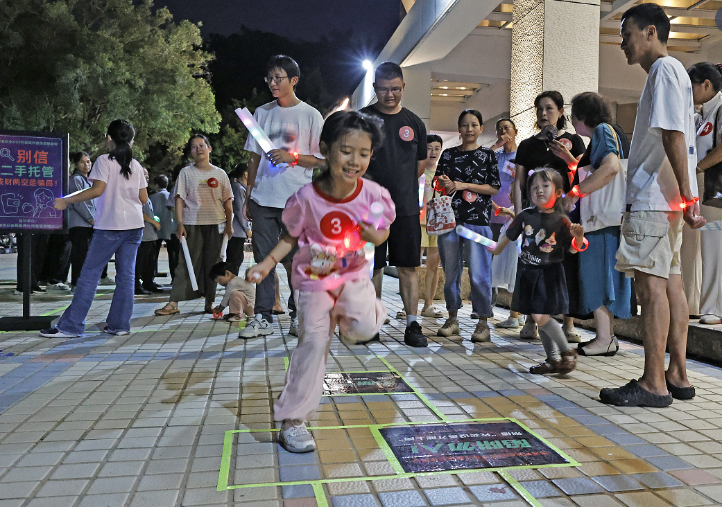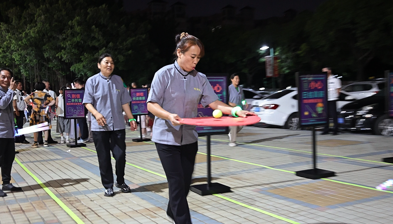 荧光赛道上,防骗知识被玩进了夜生活。9月13日晚,在番禺丽江花园网上配资股票网,有人小心翼翼端着“真相球”在接力跑中稳住脚步;有人单脚敏捷地跳过“安全格”,一不小心误踩“骗局格”,只好退回重来;还有广场舞阿姨和中小学生并肩作战,迅速识别并拔起带“诈”字的小旗。
